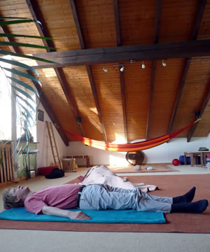 3. Phase: Sich auf den Boden auf den Rücken legen, loslassen und sich dem Boden einfach hingeben. Ich kann mich hingeben und einfach vertrauen, dass ich getragen werde. Vielleicht entdeckt jemand das Gefühl, dass man sich auch dem Leben hingeben kann und getragen wird. (vgl. Osho, Das Orangene Buch, Köln 1985)
